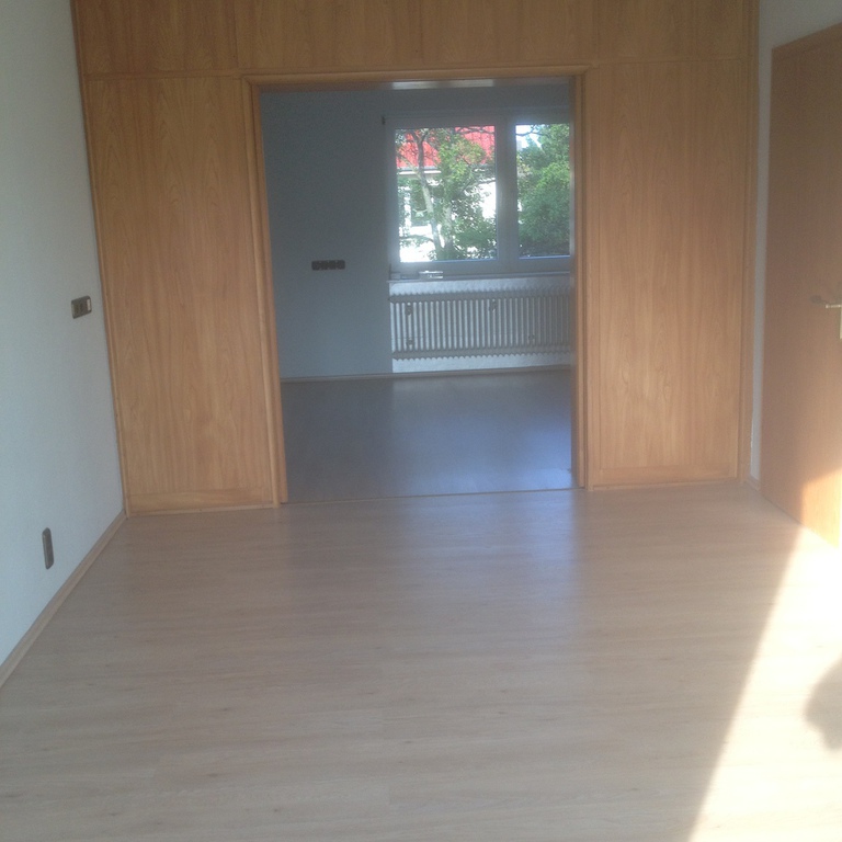 Bei dieser Immobilie handelt es sich um eine unterkellerte Doppelhaushälfte mit drei Wohneinheiten und einer Garage. Die Wohnung im  Obergeschoss ist eine ca. 106 m² große Drei-Zimmer-Wohnung