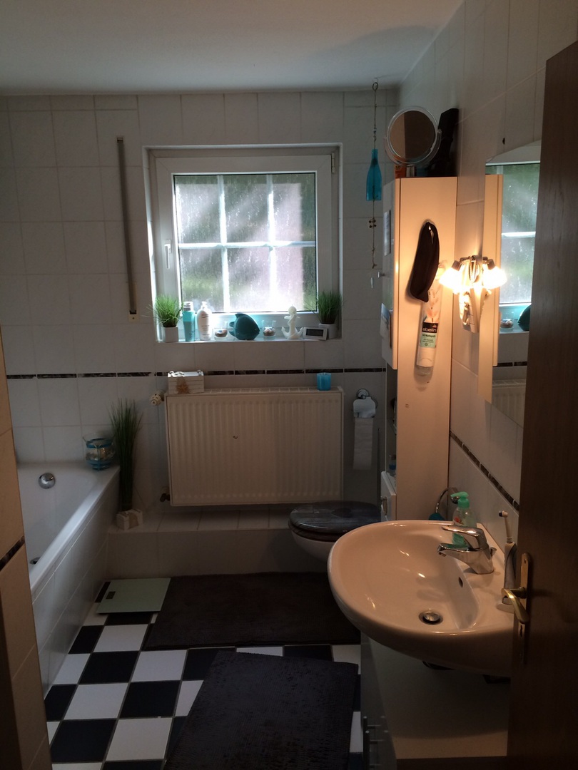 Balkon, Bad, Kellerraum und Terrasse.